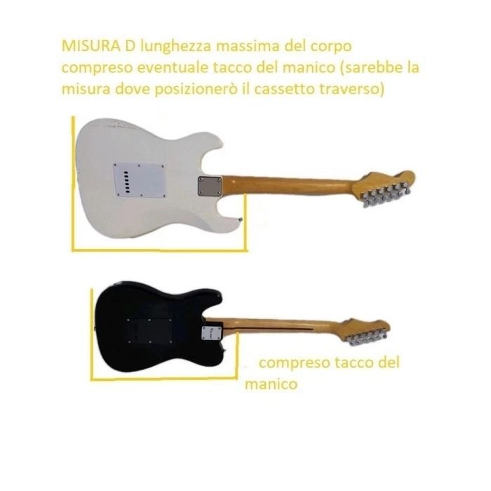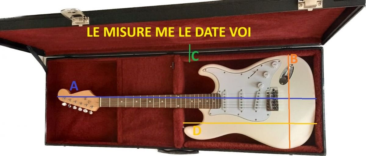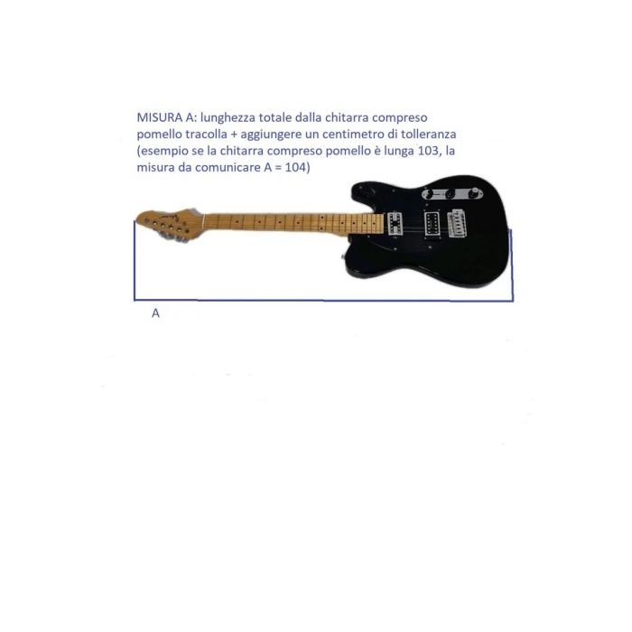 · MISURA A: lunghezza totale dalla chitarra compreso pomello tracolla + aggiungere 0,5 CM di tolleranza (esempio se la chitarra compreso pomello è lunga 103, la misura da comunicare A = 103,5)