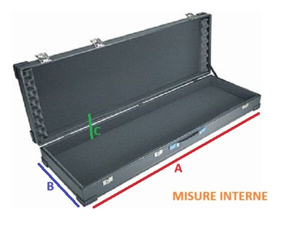 · MISURA A: lunghezza della tastiera o mixer poi aggiungere 1,5 di tolleranza per le mani (questa sarebbe il lato dove posizioneremo la maniglia). Quindi se lo strumento è lunga 102 cm precisa la misura A = 103,5 cm